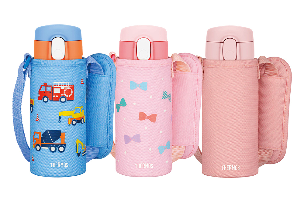 ストローボトルが洗いやすくリニューアル!飲み口とパッキンが一体で付けはずしがしやすくなりました。持ち運びに便利なポーチ付き。