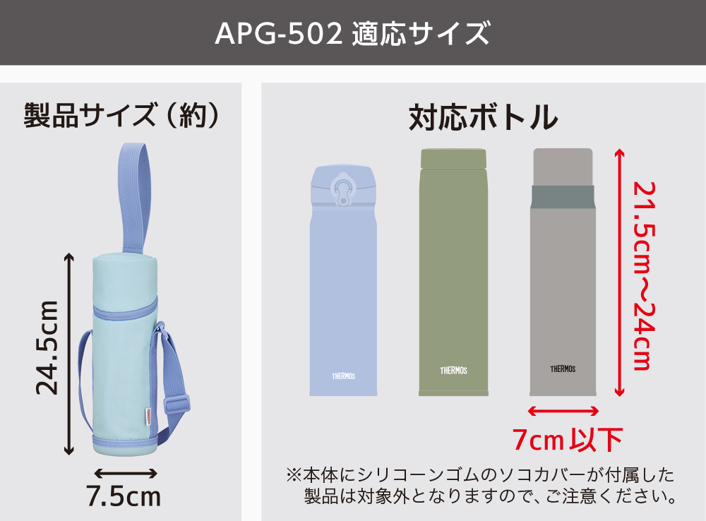 高さ21.5cm~24cm、幅7cm以下のサーモス製真空断熱ボトルに対応。