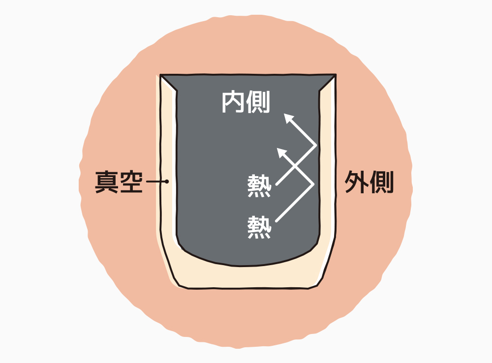 真空断熱構造だから、飲み頃温度をキープ。保温・保冷OK。