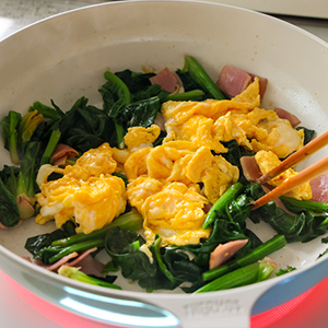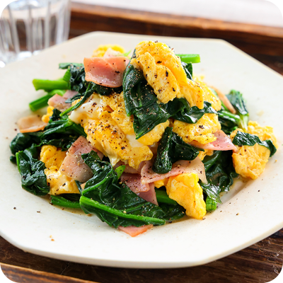 ほうれん草とベーコンにふんわり卵を加えてボリュームアップ!