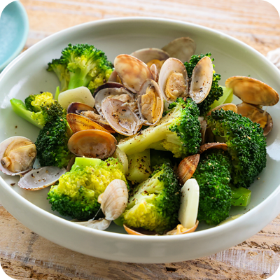 詳細を見る- あさりとブロッコリーの白ワイン蒸し